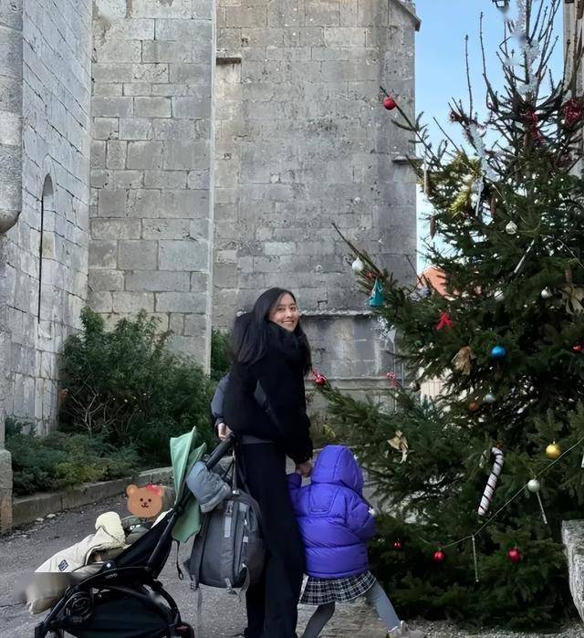 照片里她一手牵着蹦蹦跳跳的女儿,一手推着载着小儿子的婴儿车,脸上挂着温柔又松弛的笑容。